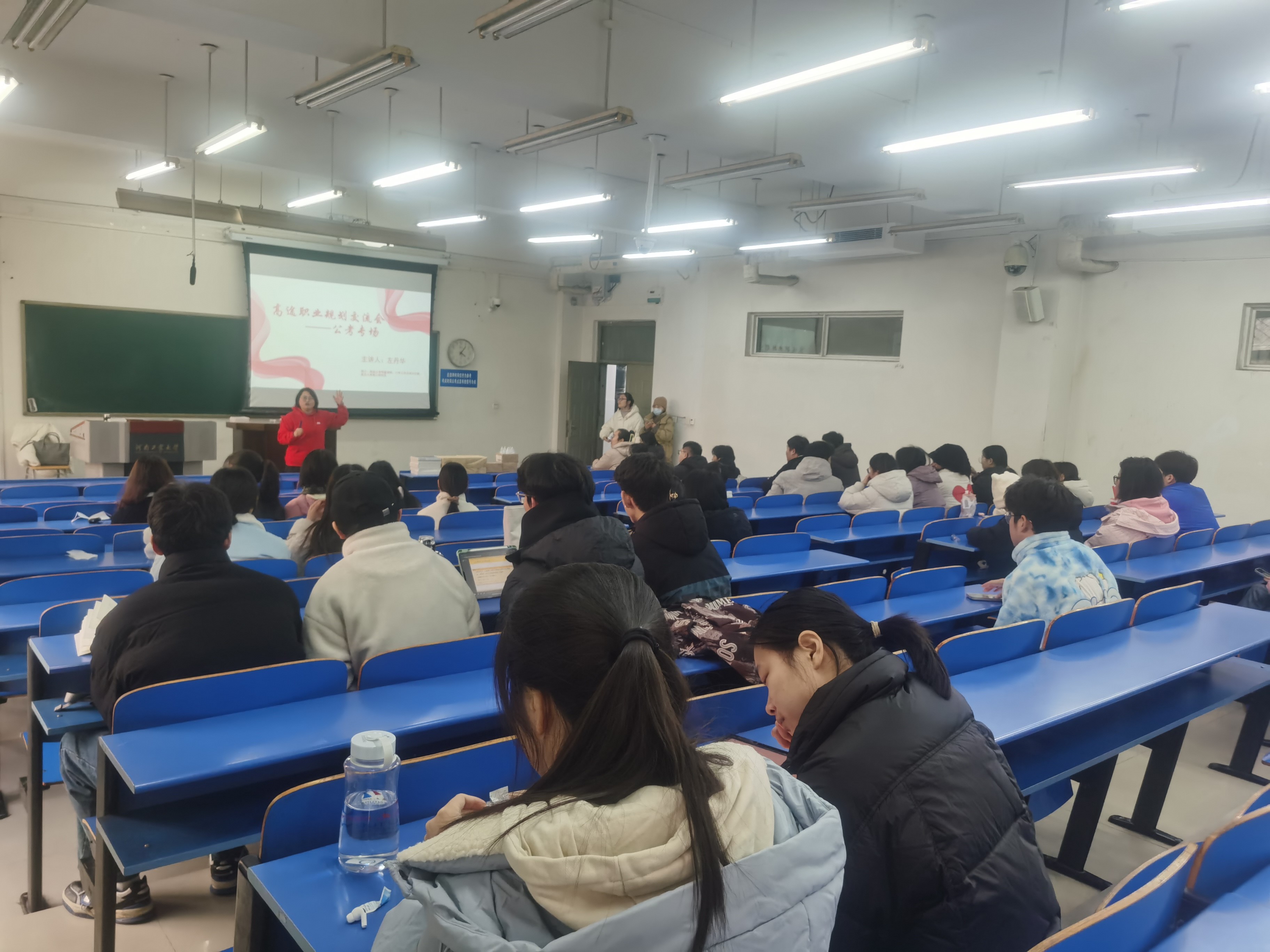 在4号楼131教室举行了“公考备考指导讲座”,学院邀请高途公职申论研究院院长左丹华主讲。此次讲座共有70余人报名参加,涵盖我院本科生及研究生。