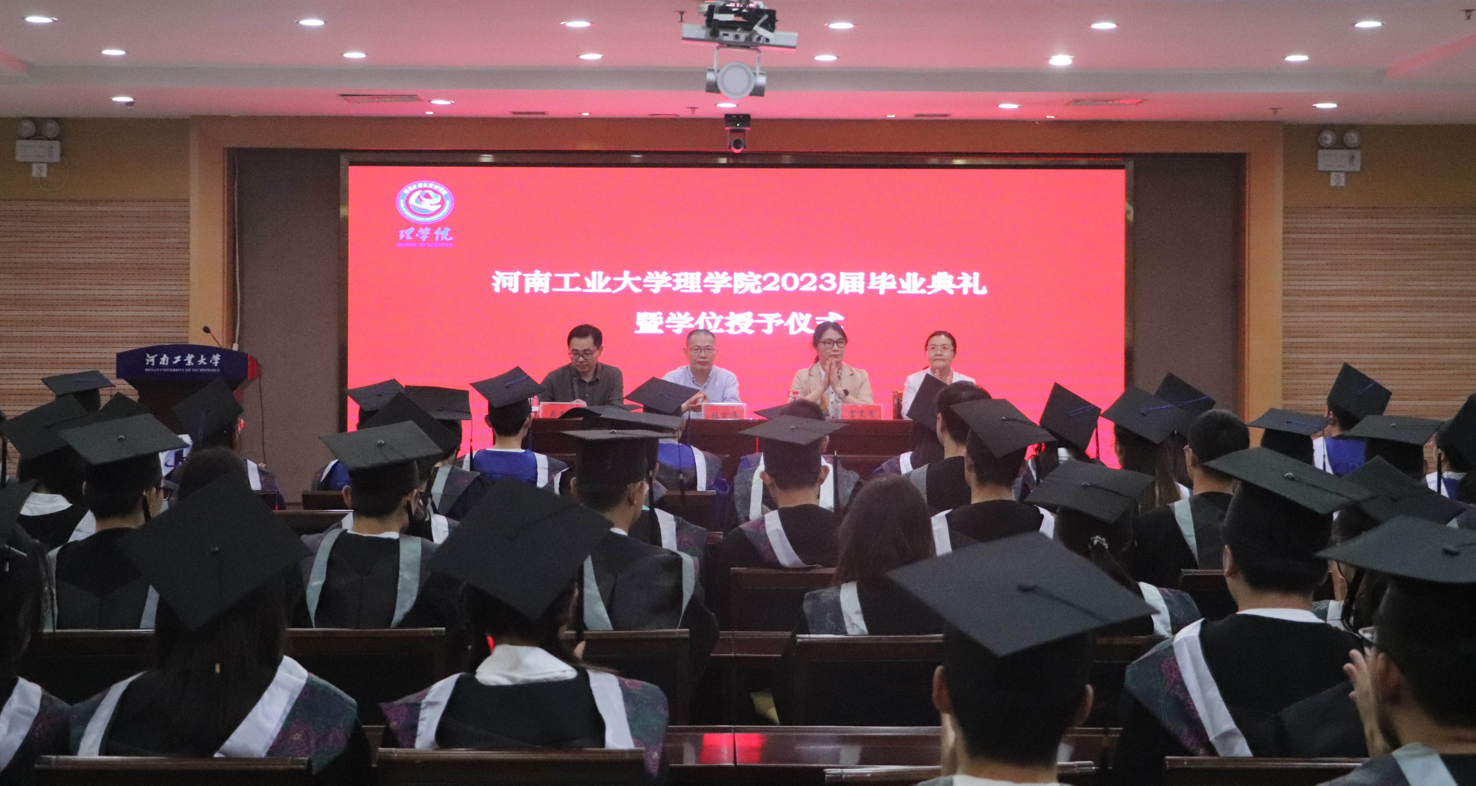 毕业典礼在庄严的国歌声中正式拉开序幕,全体起立奏唱国歌。吴春阳宣读表彰了2023届河南省优秀毕业生和校优秀毕业生名单,与会领导为获奖同学颁发荣誉证书。曹建莉介绍了学院2023届毕业生学位授予情况,并鼓励2023届毕业生们在以后的工作、学习中再接再厉,取得更优异的成绩。