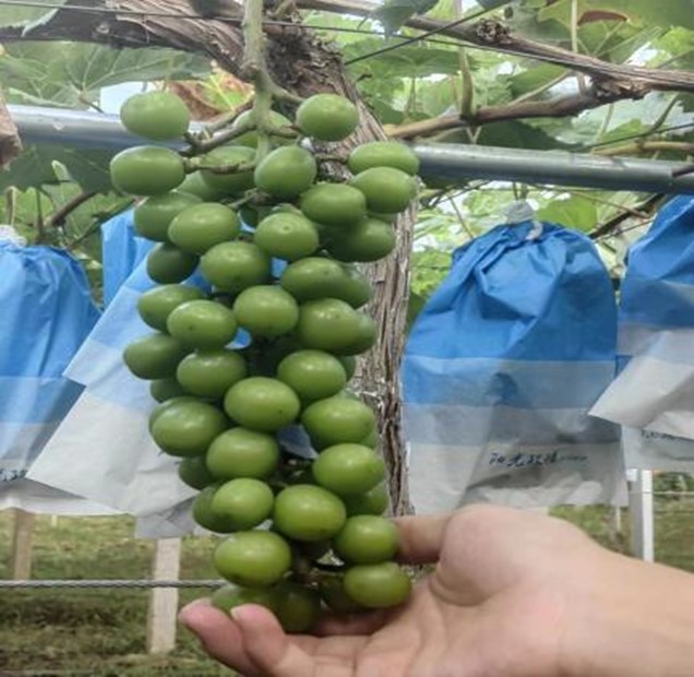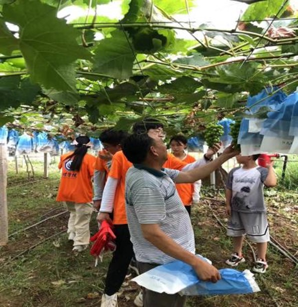 在那里,我们参观了当地农民发展的新型农业“阳光葡萄”,这是一种大棚种植技术,一共建立了三个临近大棚区,总产量可达12000多株葡萄,相较于以前的小农户散体种植,然后集中售卖,此类种植能够在提升葡萄品质的基础上实现葡萄的大规模量产,且易于管理。葡萄口感脆而多汁,有蜂蜜般的甜味,果粒饱满,而且纯天然无公害。