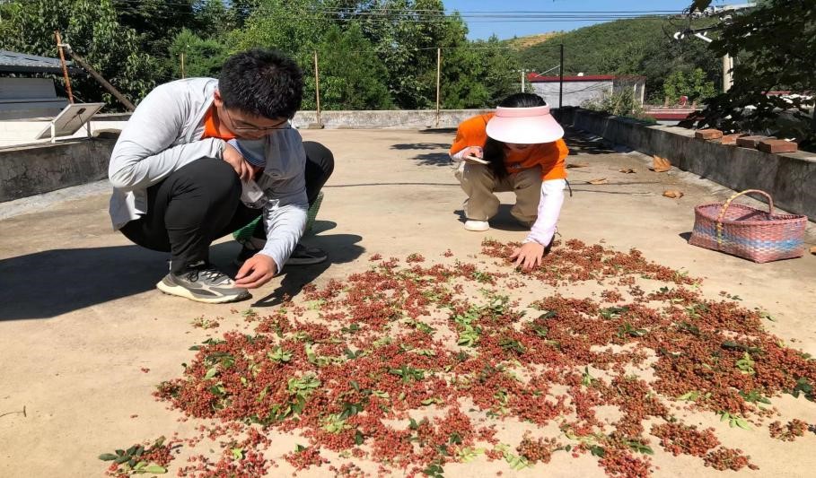 花椒是中国特有的香料,位列调料“十三香”之首。在我国,花椒栽培历史悠久,在《诗经》《齐民要术》中均有记载。历代文人墨客赞颂“椒浆”、“椒酒”、“椒房”的诗句和文章也不少。著名品种鲁山花椒在河南省平顶山市鲁山县多有种植,小队在当地村名的带领下前往花椒山上体验采摘花椒之趣,切实感受村民的不易。