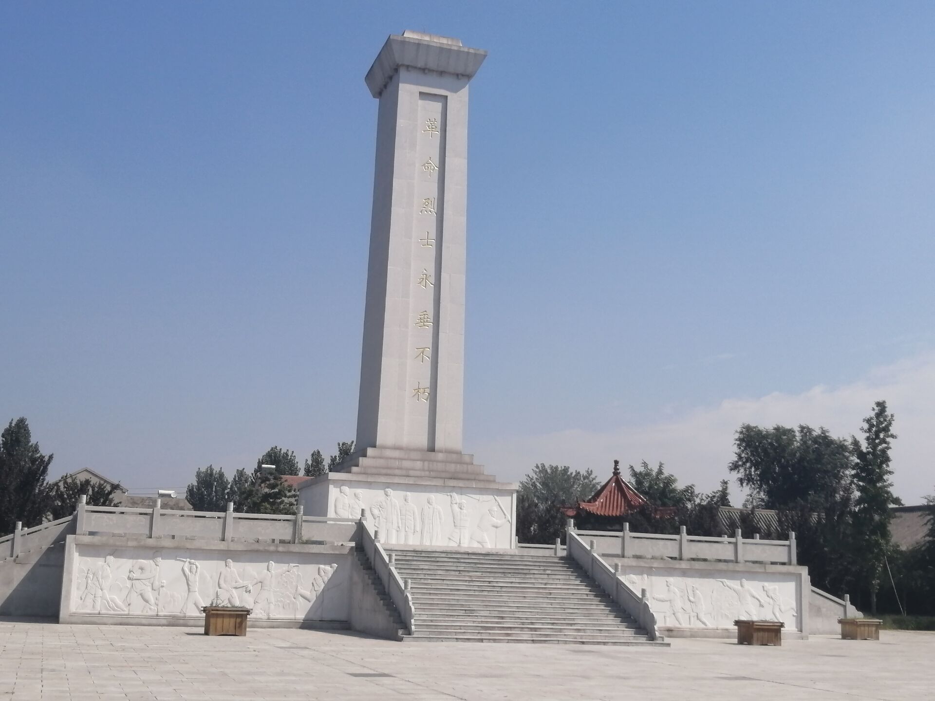 我在早上八点左右吃了早餐,便踏上了新一天的征程。到达烈士陵园后,首先映入眼帘的便是那“革命烈士永垂不朽”碑,道路两旁是写满英雄事迹的告示牌,之后再见到的便是那一排排的烈士之墓,站在那里,不禁想起之前的人们生活是多么艰辛,甚至有些烈士在他还没有二十岁的时候便被战争夺去了生命。